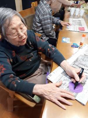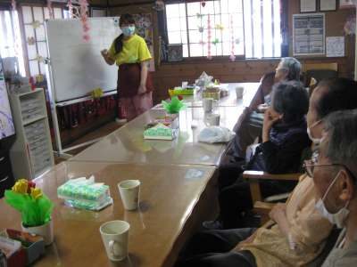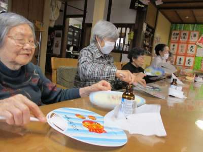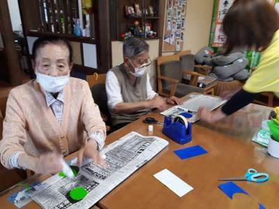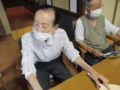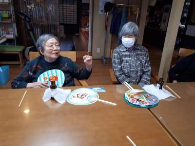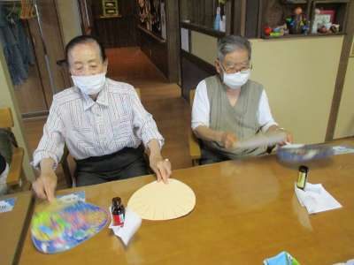 午後のレク①は、うちわを使って、ドリンクにあるテッ