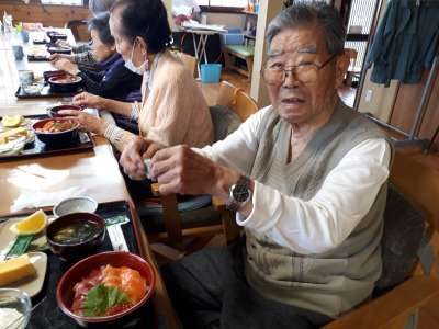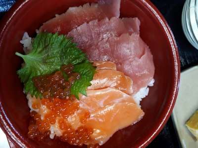 寿司屋のまぐろサーモン丼を召し上がってくださいね