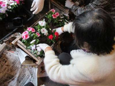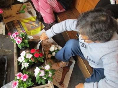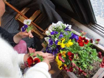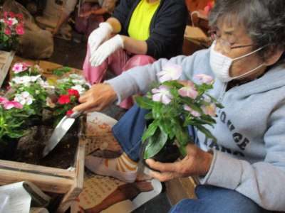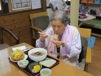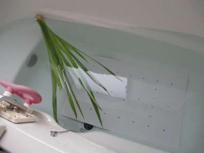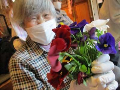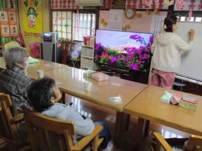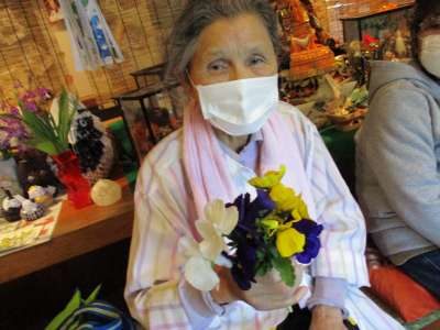 本日の入浴は、スタッフがもってきた菖蒲を入れての入浴です