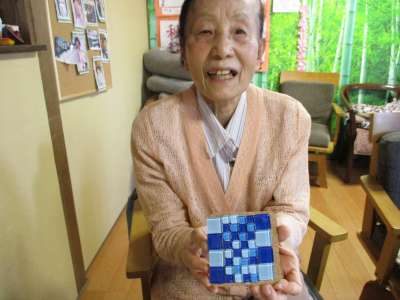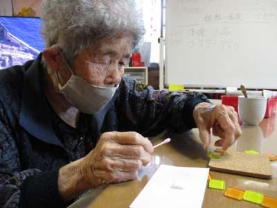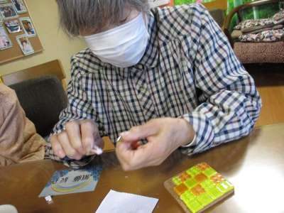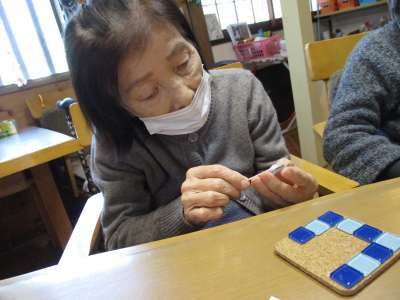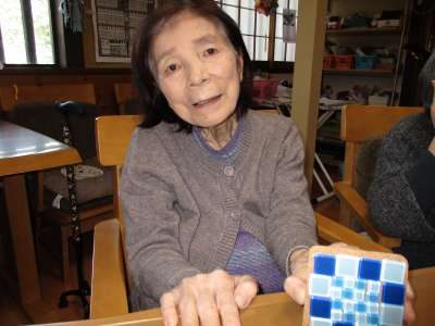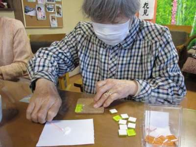 それぞれのお好きな色のタイルを選んで貼り付け中