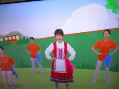 高原列車は行くの音楽に合わせて体操