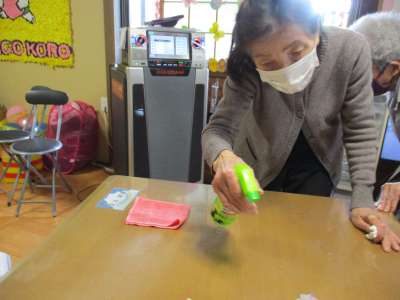 お食事前のテーブルの消毒は皆様にご協力いただいて