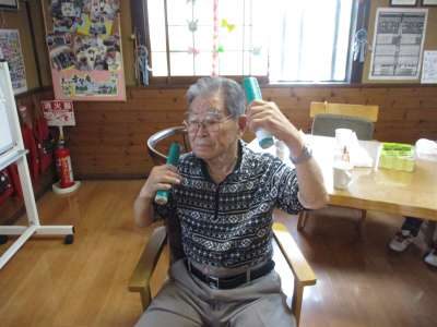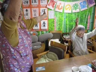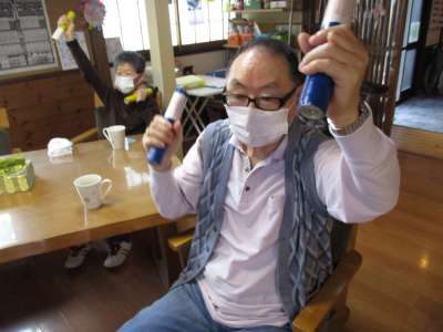 朝の\(^o^)/バンザイ 手をしっかり伸ばして