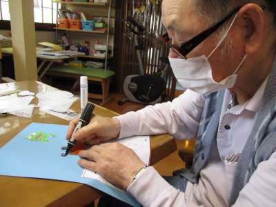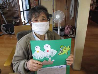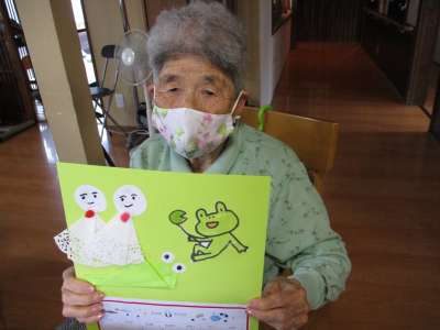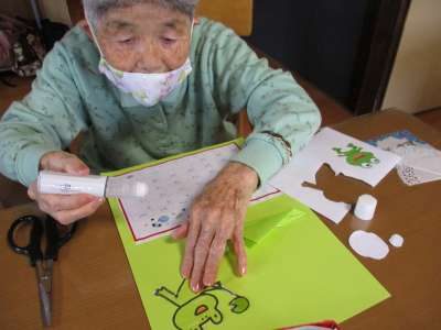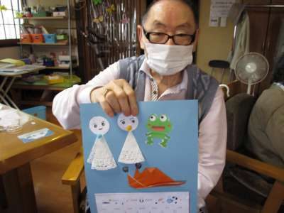 色画用紙にカレンダーとカエル&カタツムリ・・