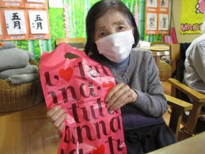 本日作った袋に景品を入れて