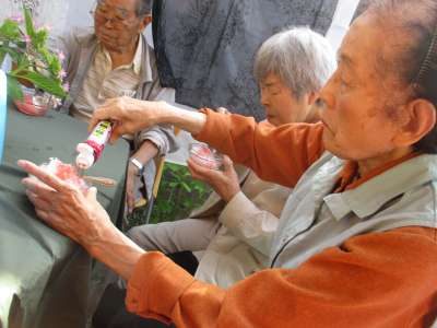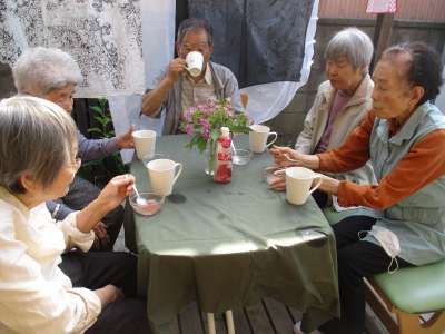 真心の幸望庵の裏にあるデッキに出てみんなでいただきましょう