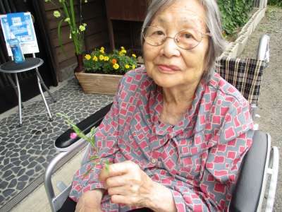 スタッフが持ってきたお花も庵内に飾って皆様をお出迎