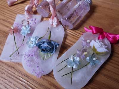 絵手紙や生け花は色の配置やデザインを考え工夫しながらの作業