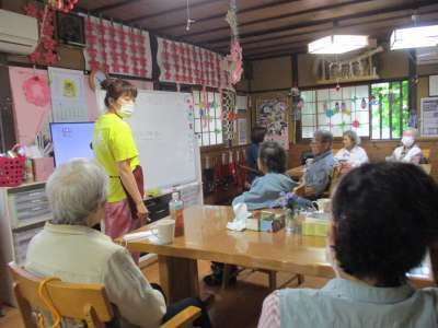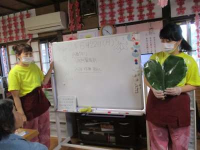 今日の朝会は本日の調理で使う朴葉(ほうば)の話題