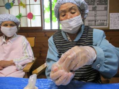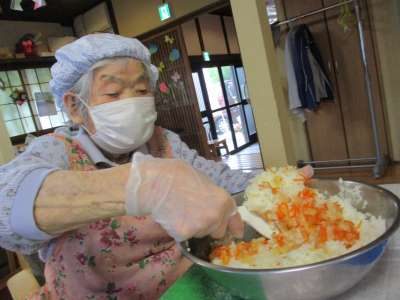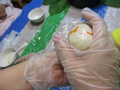 酢飯を茶碗に盛りラップで小さな俵むすびを作ります