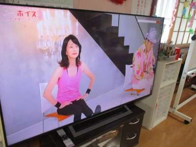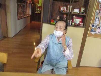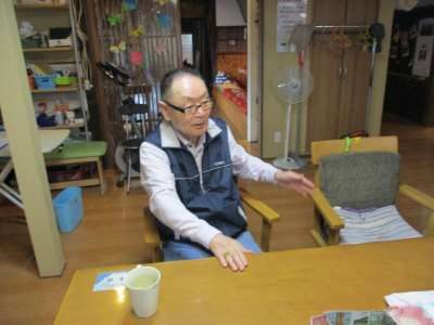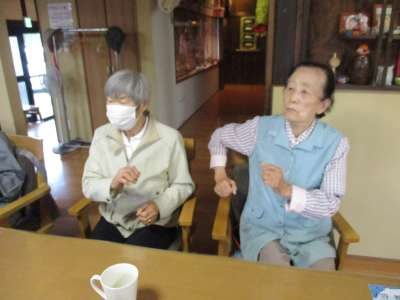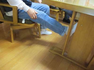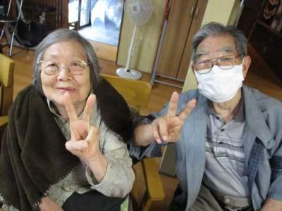 母寒いとひざ掛けを肩にかけて、それを見て父が直していました