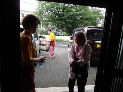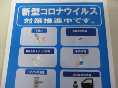 スタッフが玄関先で皆様の手指の消毒を行います