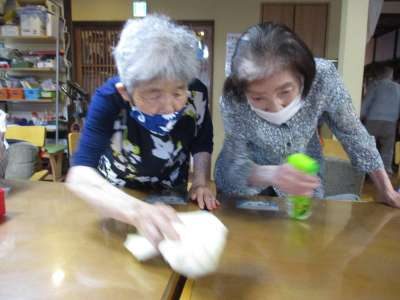 テーブル拭きを一生懸命手伝ってくださるお母さん