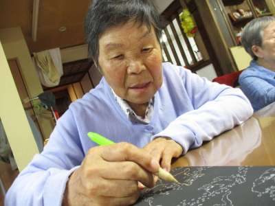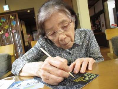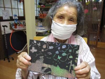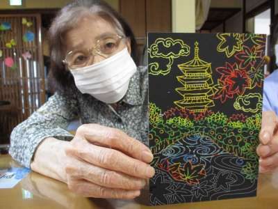 本日のレクリエーションは、スクラッチアート