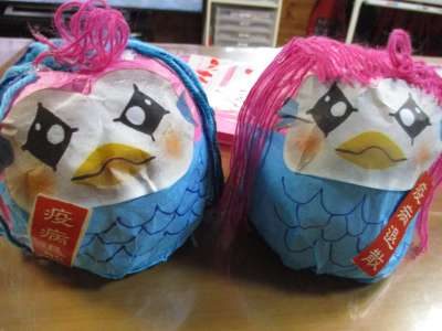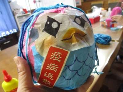 本日の疫病退散のアマビエダルマを制作でも毛糸を切って