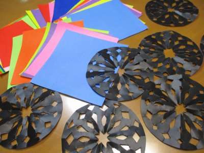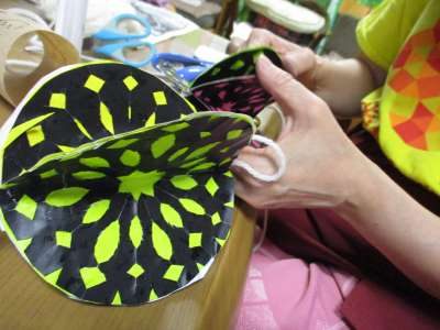 🎆作りは折り紙に切り絵を貼り付け丸くカット