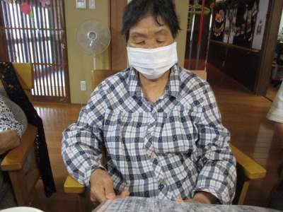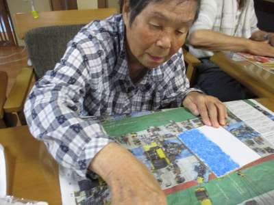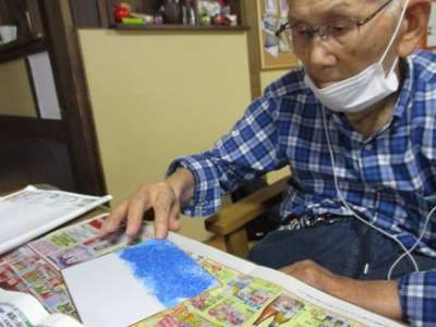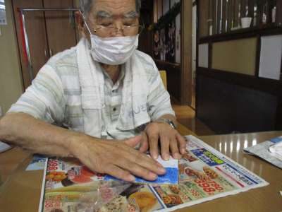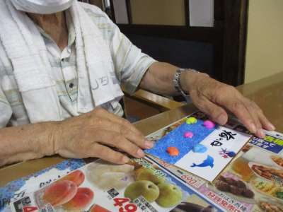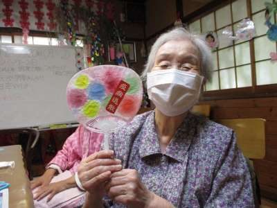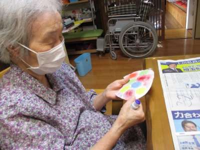 こちらのお母さんは、色付けが終わり乾かしておいたうちわ