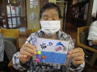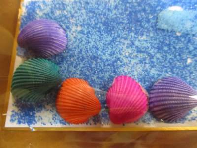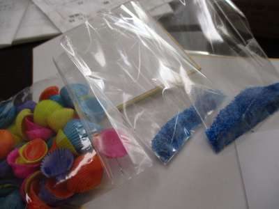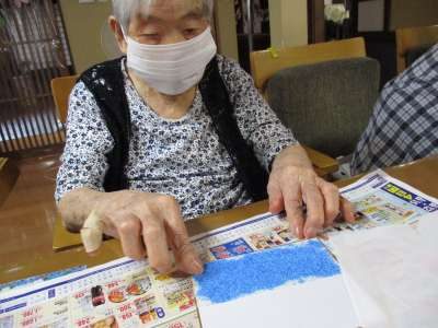 ミニ色紙に両面テープを貼って 水色と青色を混ぜた