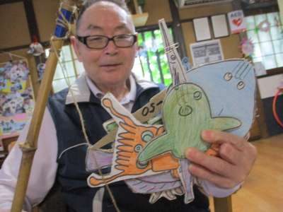 磁石付の段ボールのお魚を磁石の付いた釣り竿で釣り上げる