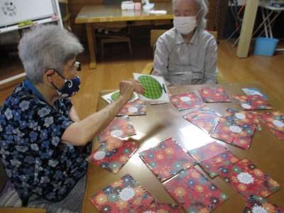 うちわに乗せた球を落とさない様にお隣さんにリレーしてゆきます