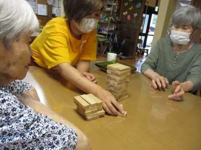 本日の午後レクは皆さん大好きなジェンガ