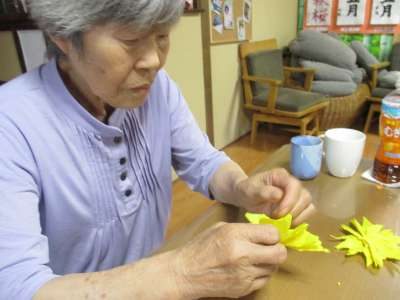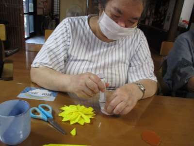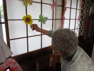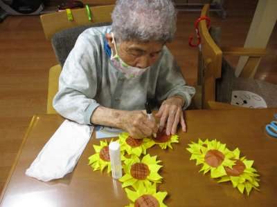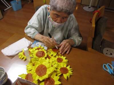 ヒマワリが出来て可愛らしく華やかなデイルームになりました