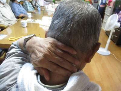 お父さんは首に冷えピタ