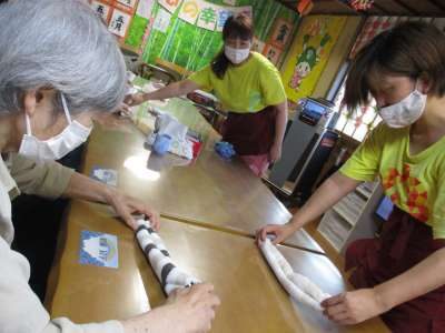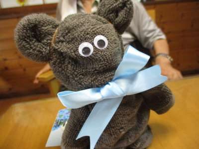 本日の午後レクはタオルを使ったタオルベア作り