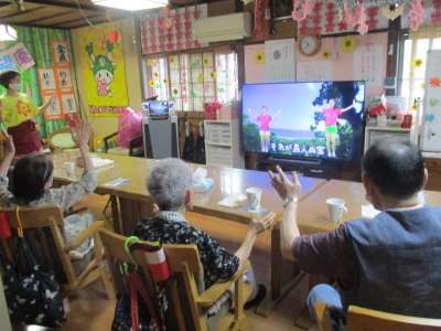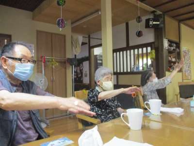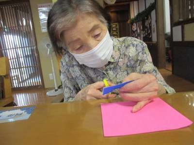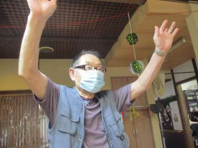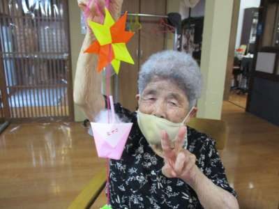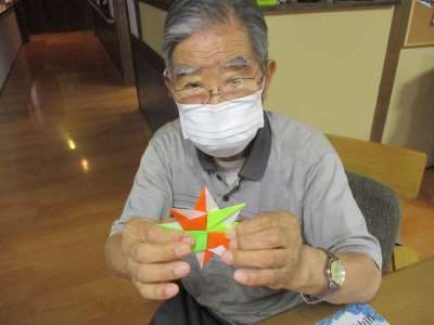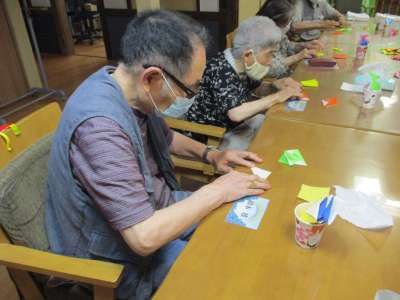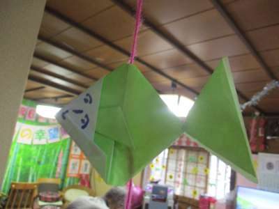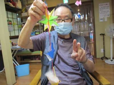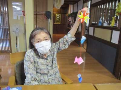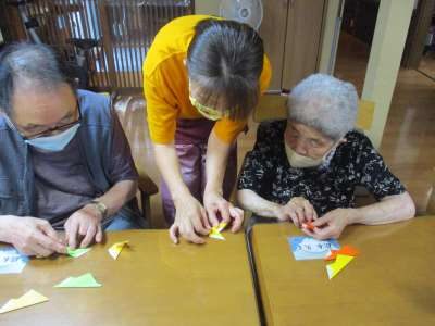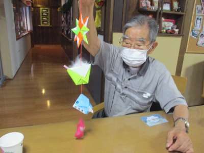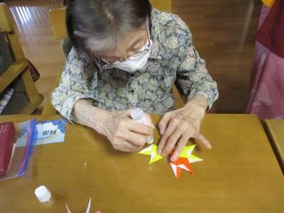 デイルームの折り紙夏飾りの続きを(゜))<<☀