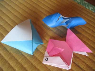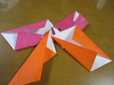 四枚に切った折り紙を折って貼り付けてゆきましょう