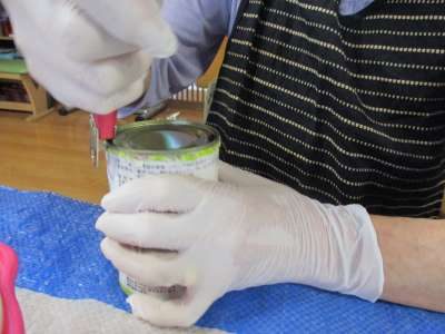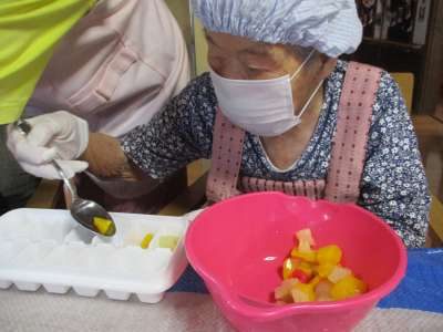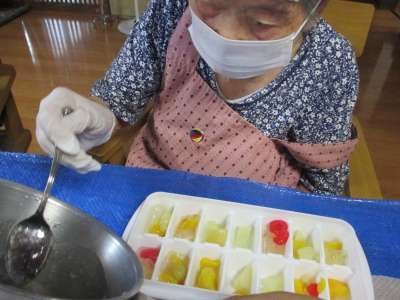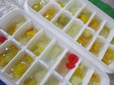 粗熱をとってから製氷器にゼラチンを流し込みます