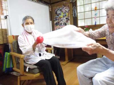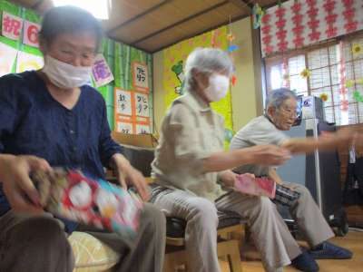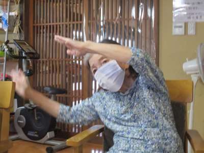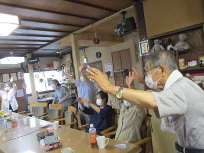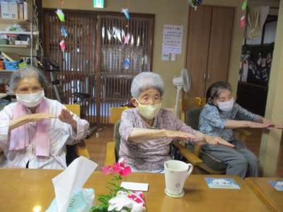 音楽体操は懐かしメロディーに合わせて歌いながらの
