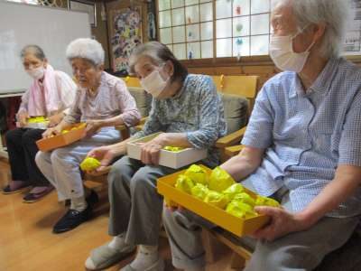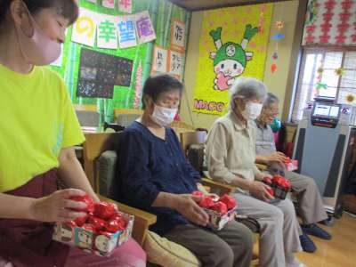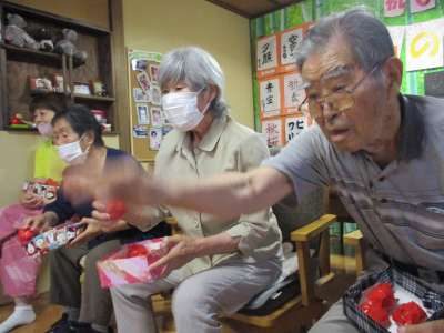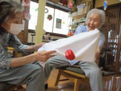 本日の午後レクは…赤黄対抗玉入れ合戦〇