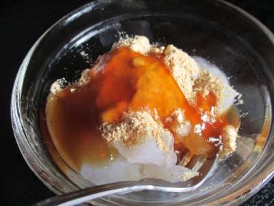 おやつは昨日作って冷た~く冷やしたくずきり餅を