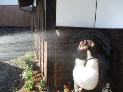 玄関前で、ご利用者様のお迎えをしてくれてるたぬき様