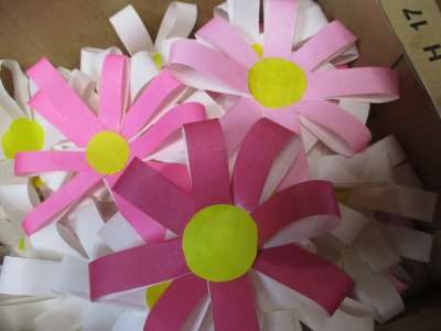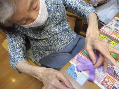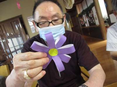 切った折り紙を、花びらにしていきます