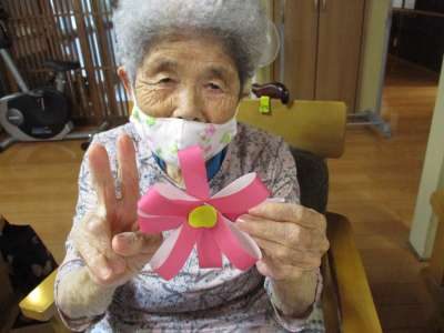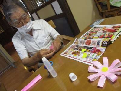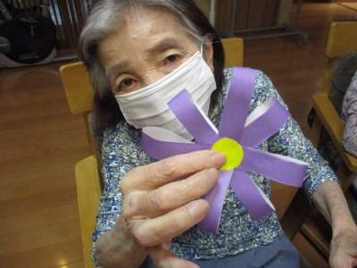 本日も壁画制作で、コスモス作り