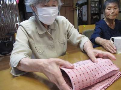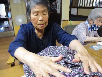 洗濯ものをたたむお手伝いをしてくれた母達です