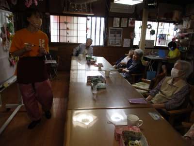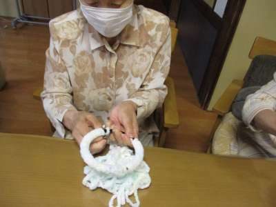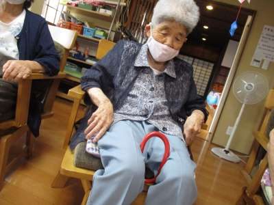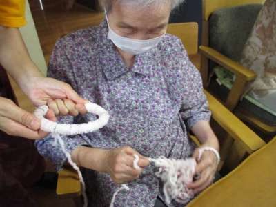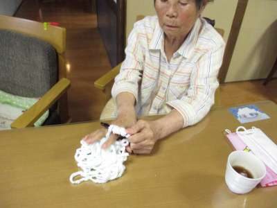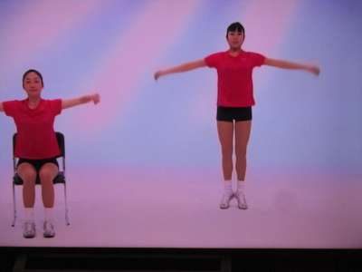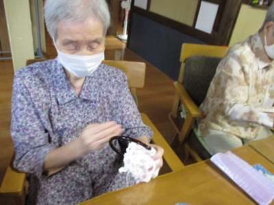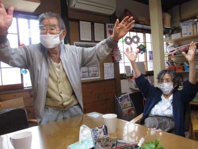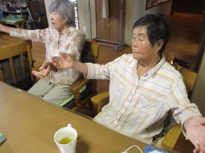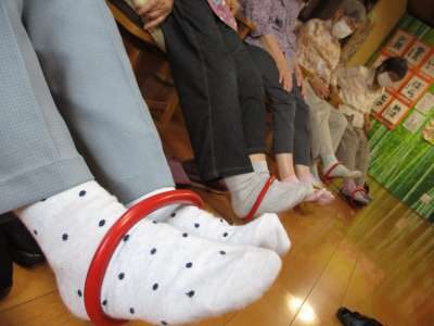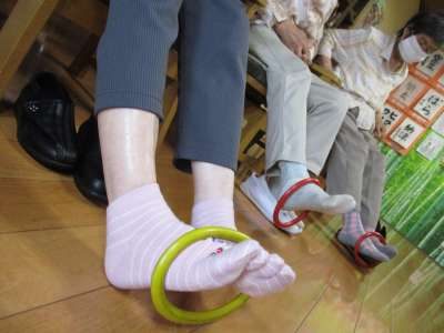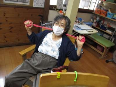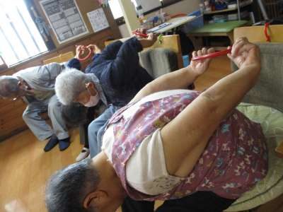 ゴム体操で、少し体に負荷をかけながら筋力UP