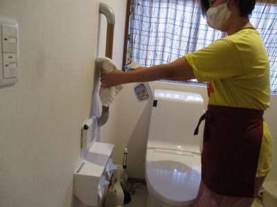 ご利用者の皆様にも玄関先での消毒・手指消毒や衣服の除菌