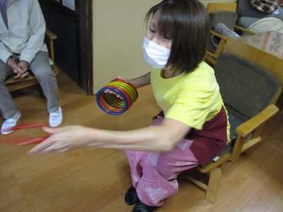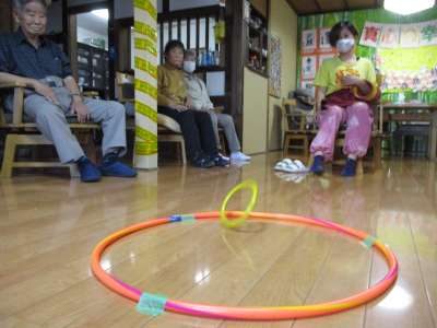 本日の午後レクは👆こちらの小さな輪っかを大きな輪っかの中へ