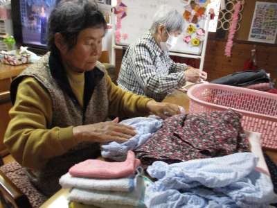 歳の母、洗い物が出たので食器拭き手伝って下さっています