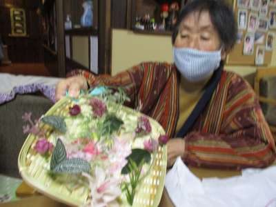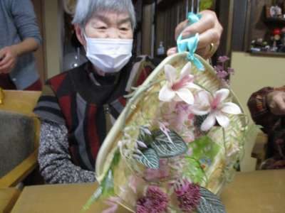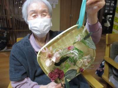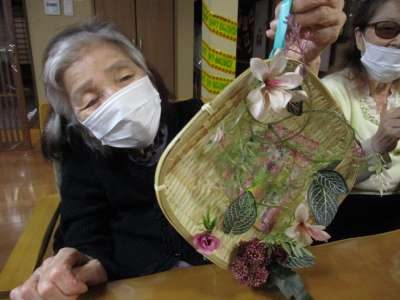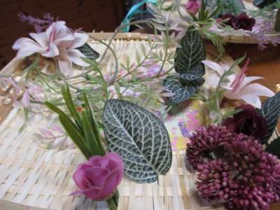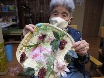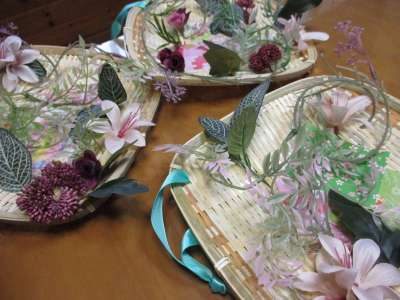 ざるにお花を挿すのが、結構大変でしたが素敵な作品