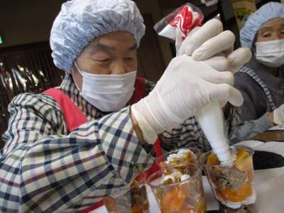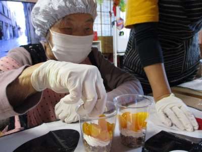 本日の午後レクは‘フルーツパフェ’作り