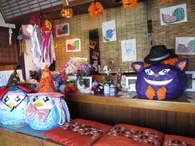 玄関を入るとご利用者様の作品がたくさん並んでいて