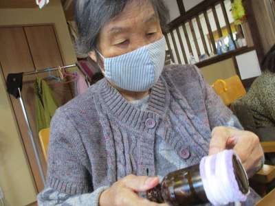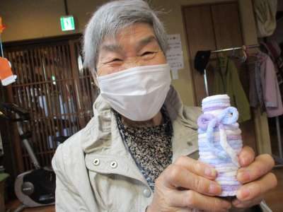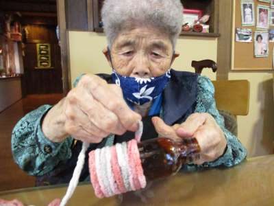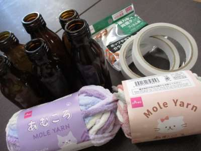 本日の午後の手工芸は瓶と毛糸を使って行います