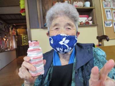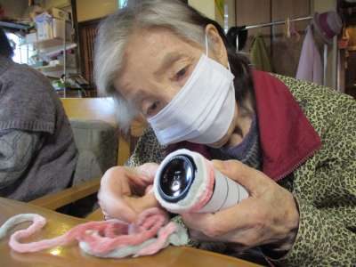 集中して手工芸を行っているお母さんの様子をご覧下さい↑