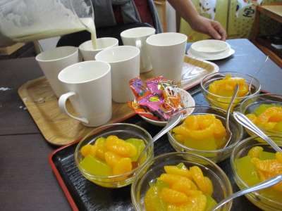 集中して作品が完成した後は、みかんゼリー&豆乳バナナ