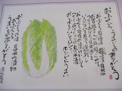 幸望庵のカレンダーの11月の詩は、白菜の漬物
