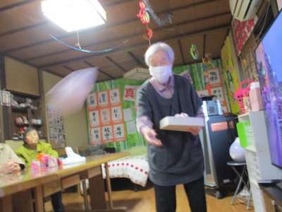 皆さん真剣に椅子の上にお手玉を着地させようと狙いますが…